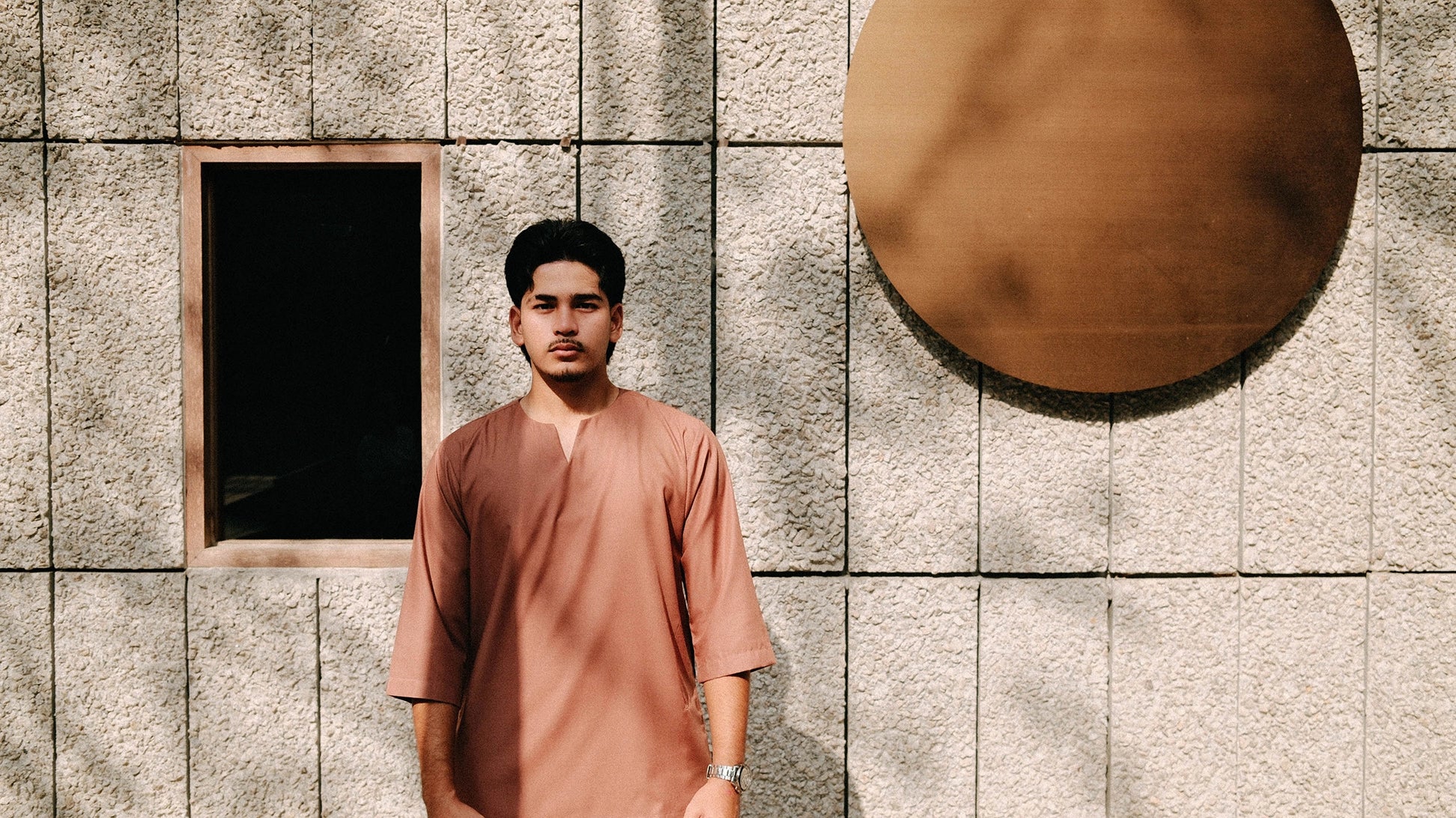 Modern twist on traditional Malay attire.
